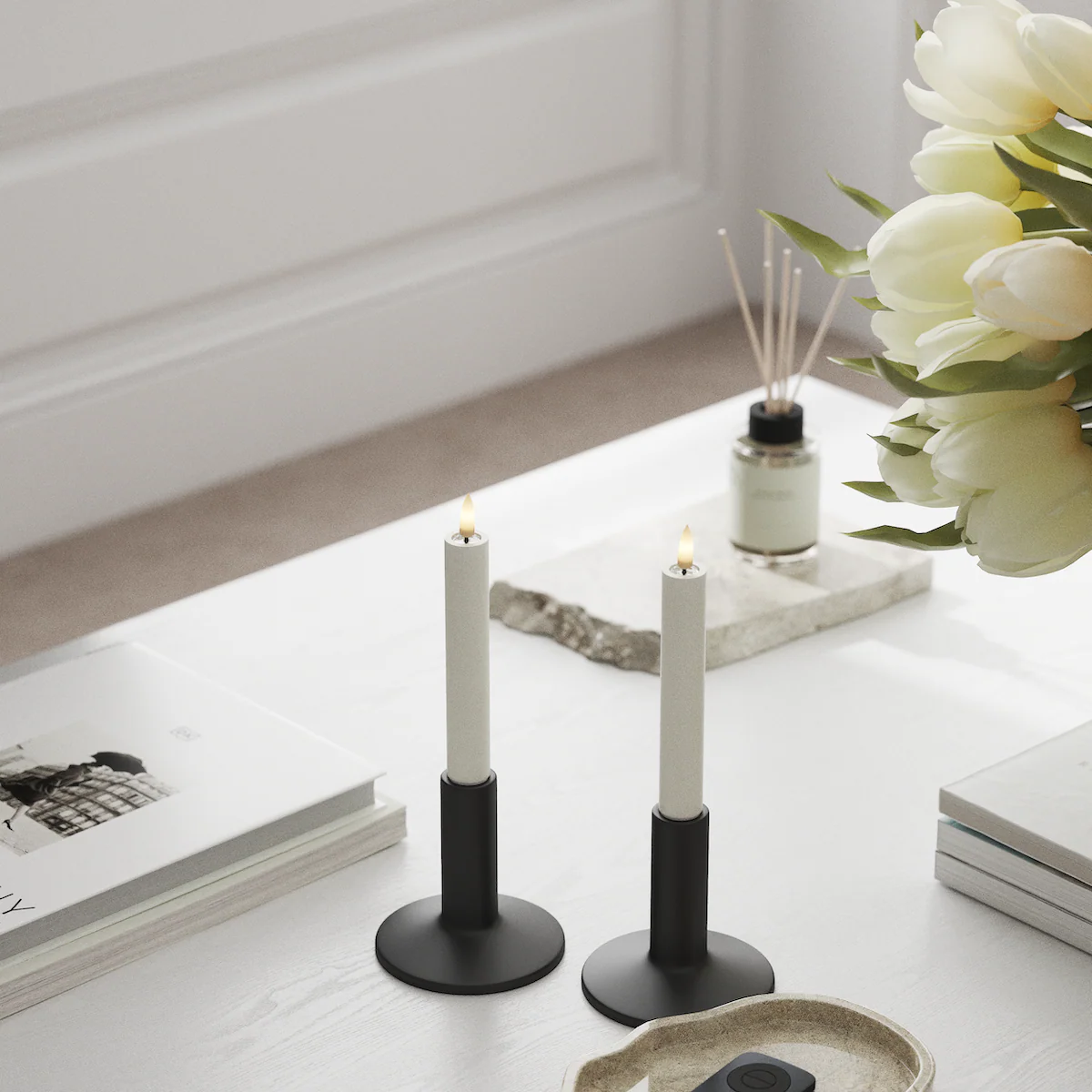 Met de handige aan/uit-knop aan de onderzijde gebruik je de kaarsen eenvoudig handmatig. Voor extra gemak combineer je ze met de optionele afstandsbediening, waarmee je de timer instelt op 2, 4, 6 of 8 uur – zo kom je altijd thuis in een sfeervol verlichte ruimte.