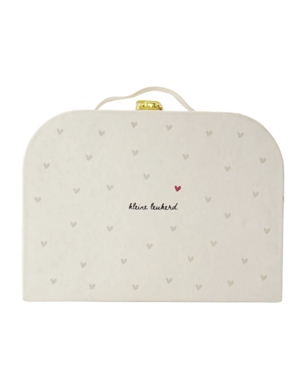 De herinneringen koffer kleine leukerd van Zusss is perfect om dierbare momenten te bewaren. Deze herinneringen koffer in de kleur wit met zandkleurige hartjes en een klein rood hartje, is gemaakt van stevig karton. Met een afmeting van 28x20x8 cm is de herinneringen koffer kleine leukerd handig en compact. De woorden “kleine leukerd” staan subtiel op de voorkant, wat deze herinneringen koffer een speels en lief karakter geeft. Ontdek ook onze woonaccessoires voor nog meer mooie items.