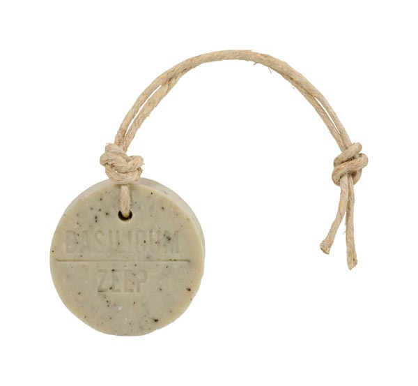Hanger schijf argille groen met tekst ZEEP.Doorsnede 7 cm x 2.5 cm