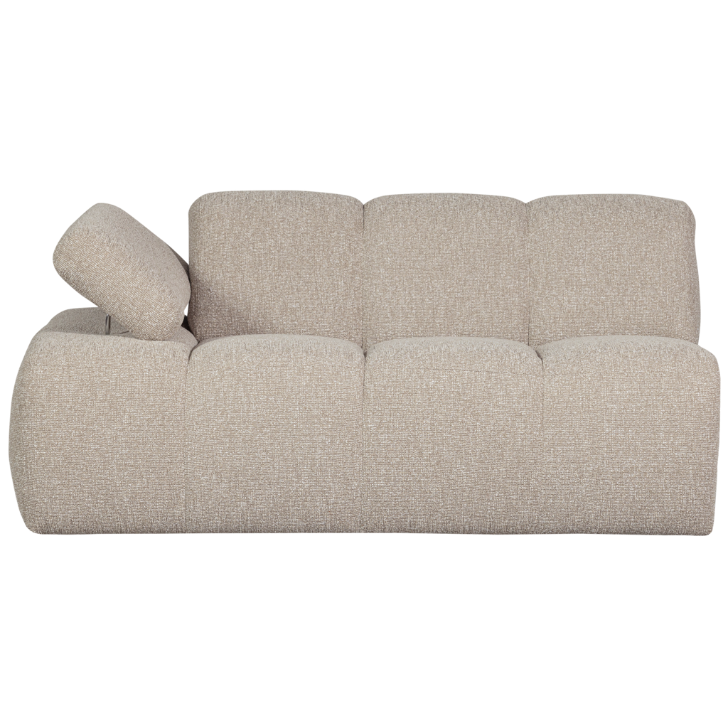 De Mojo-serie van Woood | Mojo is ideaal voor iedereen die houdt van flexibiliteit en stijl. Dit modulaire bankelement kan eenvoudig worden aangepast aan jouw woonruimte, of je nu een gezellige hoek wilt creëren of een compacte zitoplossing zoekt. De handmatig verstelbare armleuningen en de stevige boucle stof zorgen voor extra comfort en duurzaamheid. Perfect om heerlijk in weg te zakken na een lange dag of om samen te komen met vrienden en familie.