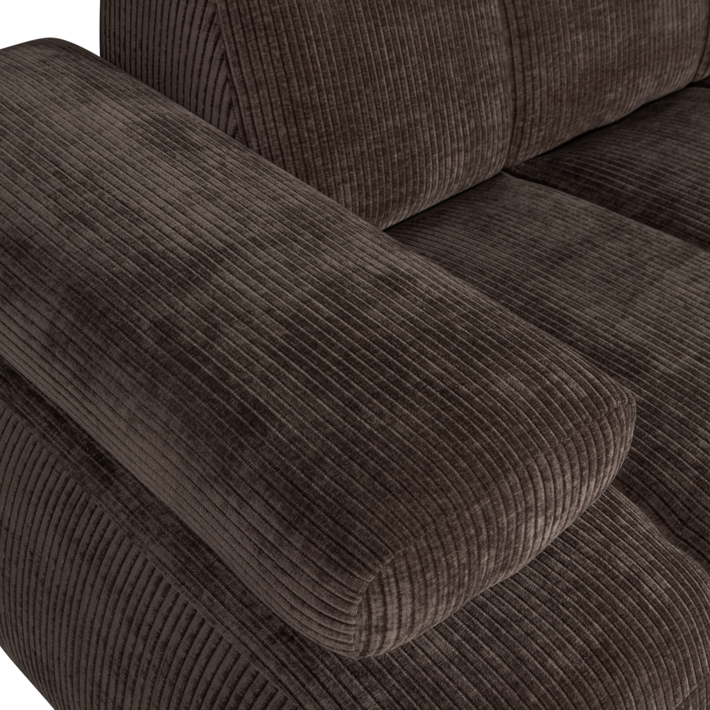 De Mojo 2-zitsbank van WOOOD in luxe ribstof biedt comfort en stijl. Perfect voor elke woonkamer, met verstelbare armleuningen en een warme bruine tint. Creëer jouw ideale zitopstelling!