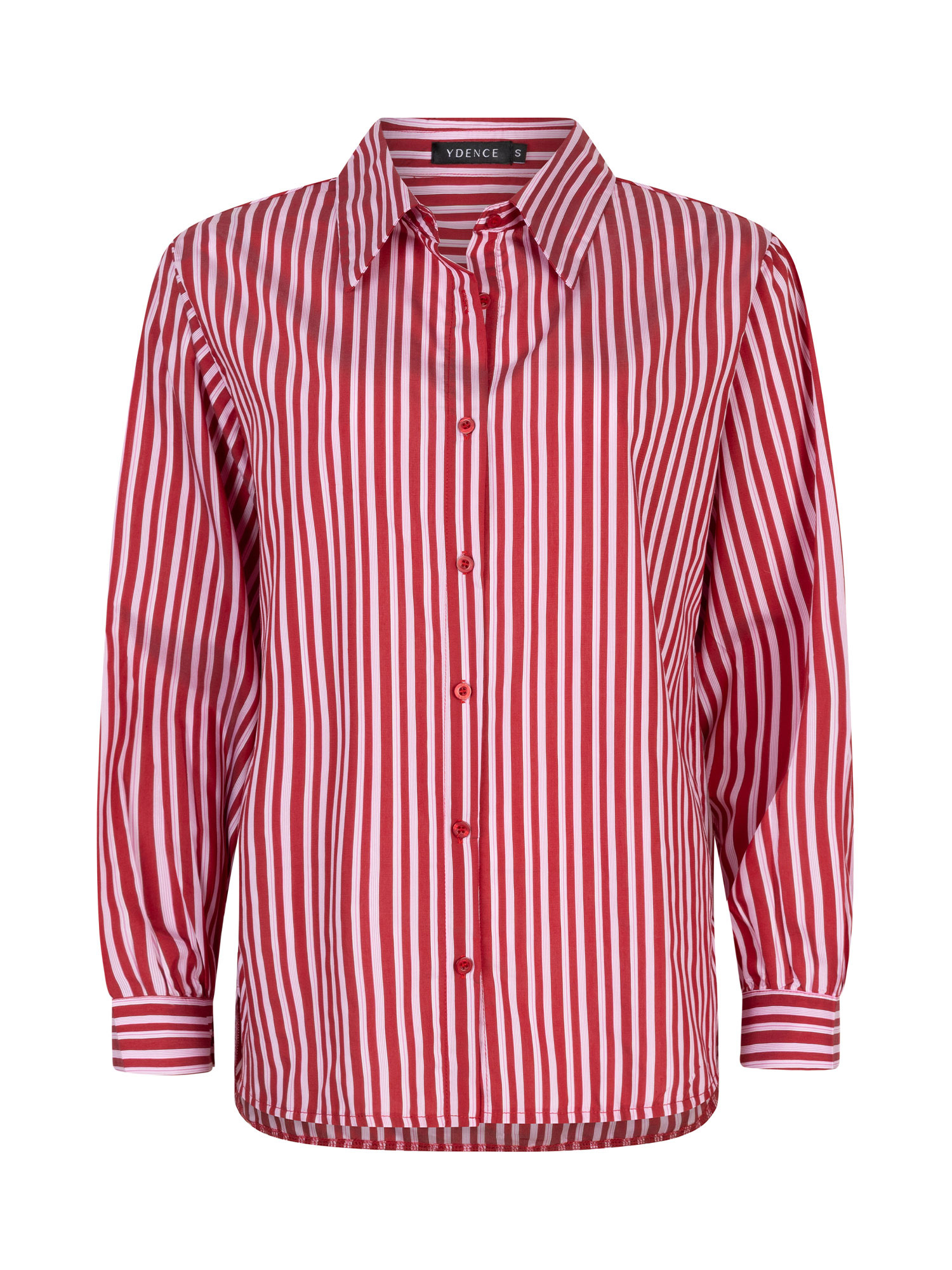 Ontdek de Blouse Judy Red van Ydence! Deze casual blouse met een speelse rood/roze gestreepte print is perfect voor elke gelegenheid. Comfortabel en veelzijdig, een must-have!