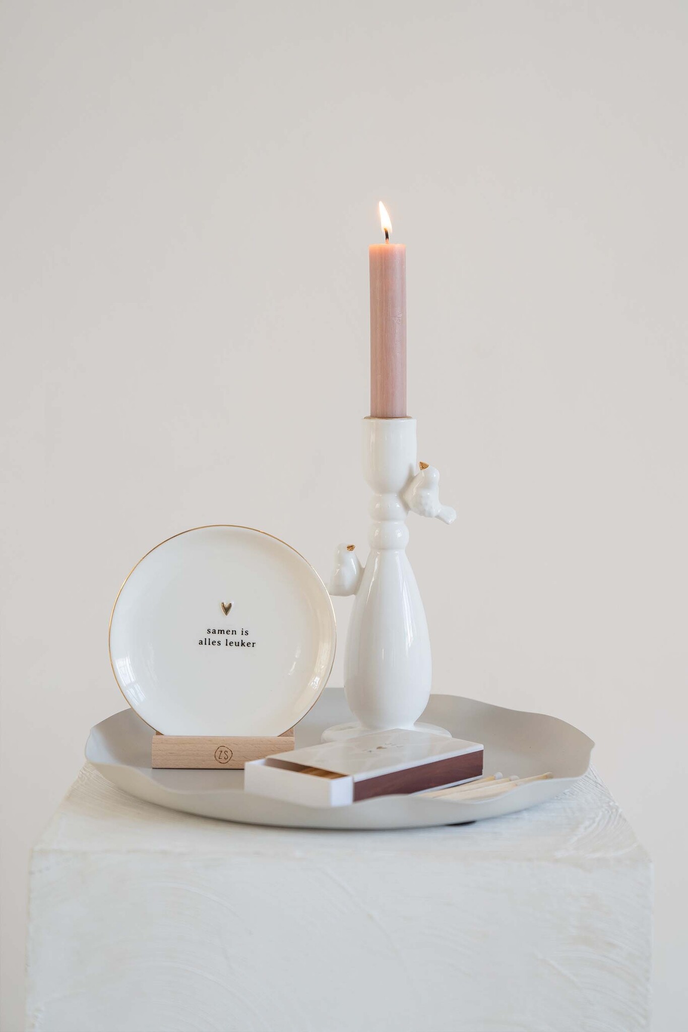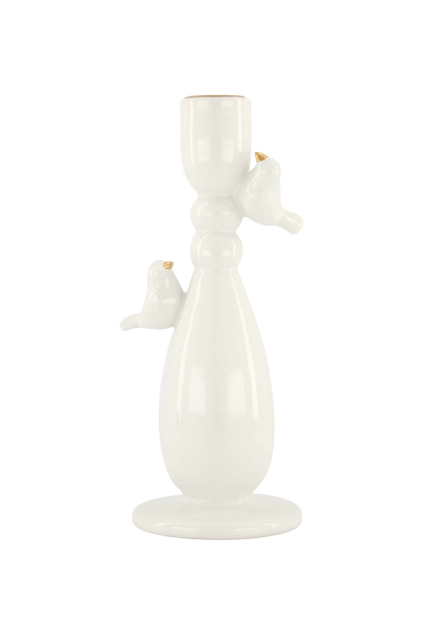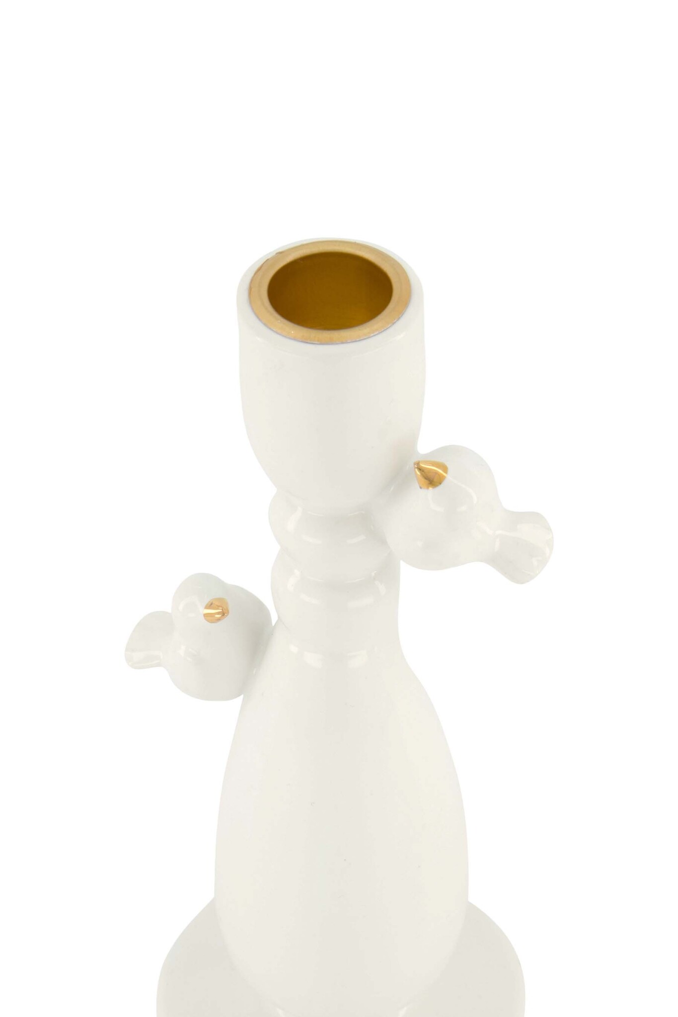 De kandelaar is gemaakt van hoogwaardig aardewerk en heeft een verfijnde wit-gouden afwerking die moeiteloos past bij verschillende interieurstijlen. Of je nu een gezellig diner organiseert of gewoon wat sfeer wilt toevoegen aan je woonkamer, deze kandelaar is een veelzijdige keuze die altijd in de smaak valt.