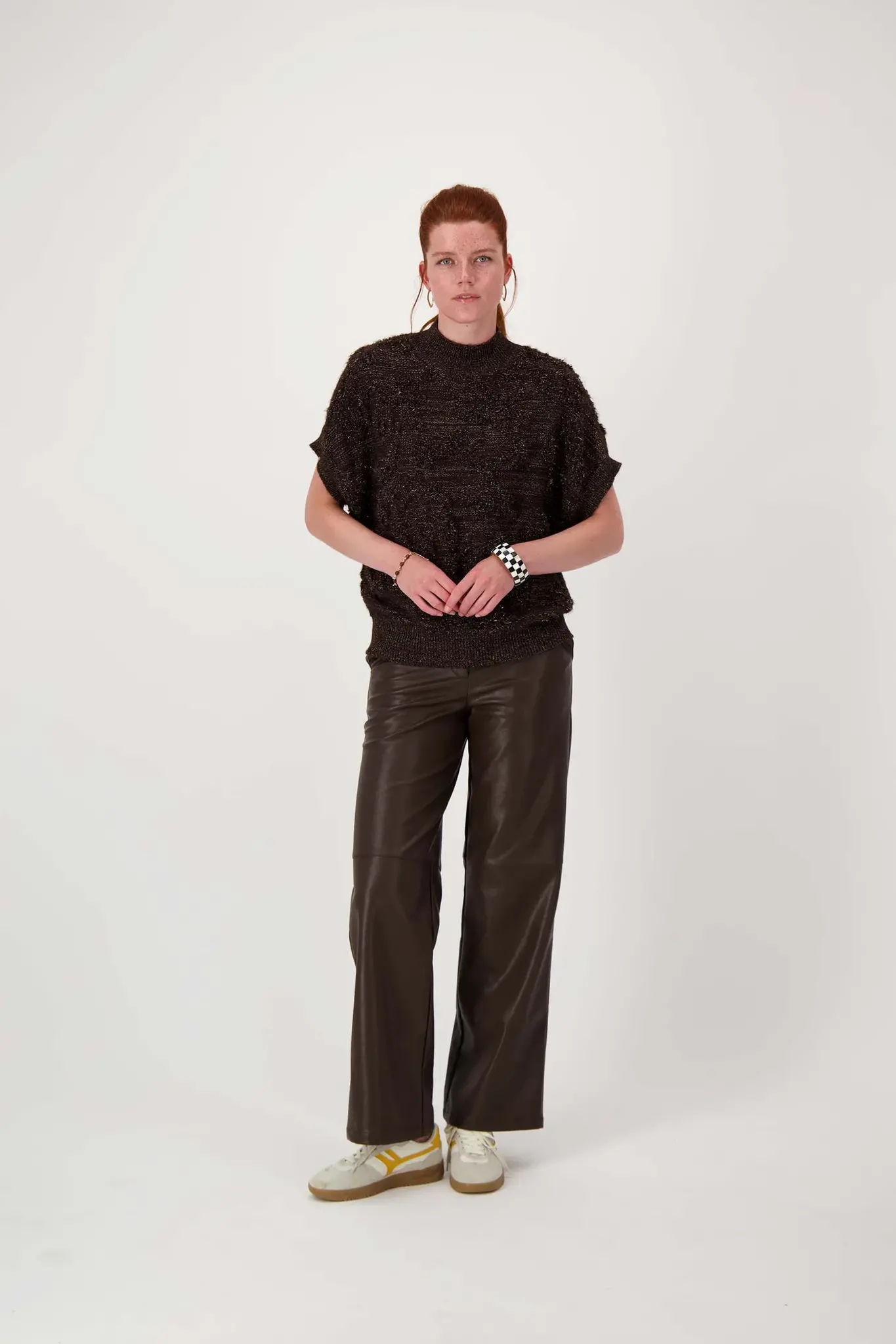 Materiaal: 58% rec polyester 30% nylon 10% wol 2% lurexKleur: bruin