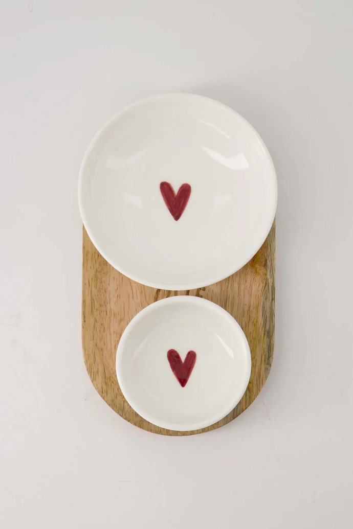 Maak kennis met het Zusss schaaltje hartje wit, een subtiel maar opvallend accessoire voor je keuken. Dit charmante bordje combineert eenvoud met een speelse twist dankzij het rode hartje in het midden.