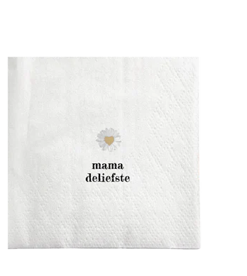 Deze Zusss servetten vierkant zijn perfect om je boodschap aan mama op een subtiele manier te vertellen. Met de tekst 'mama deliefste' en een klein geel hartje op een witte achtergrond brengen ze warmte naar elke tafel. De servetten vierkant zijn praktisch, zacht en eenvoudig te gebruiken tijdens gezellige momenten. Ze passen mooi bij een intieme lunch of een warme moederdagbrunch. Deze servetten vierkant met lieve tekst maken elk moment nét even specialer, zonder teveel poespas. Een kleine, maar fijne attentie die puur uit het hart komt.