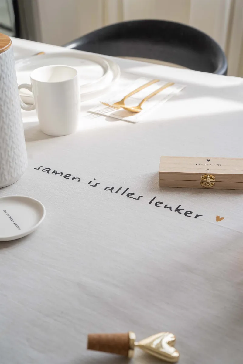 Tafelkleed samen is alles leuker in kleuren peper en zout